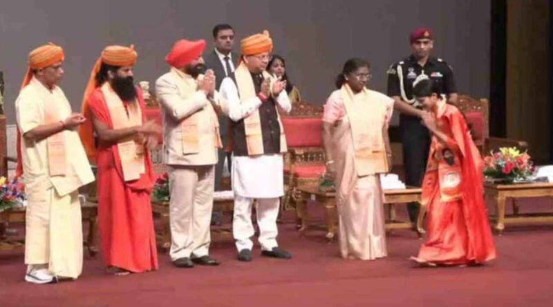 राष्ट्रपति द्रौपदी मुर्मू पतंजलि विश्वविद्यालय के दीक्षांत समारोह में हुई शामिल, मेधावी छात्र-छात्राओं को प्रदान किए मेडल