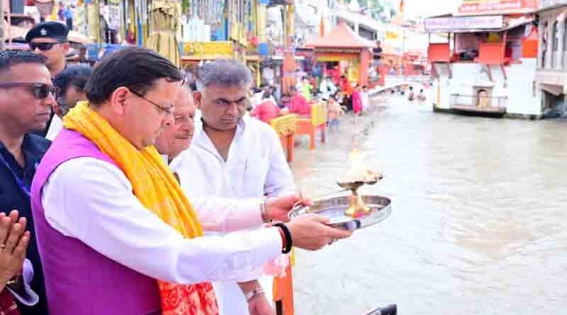 हरिद्वार 04 जुलाई 2025– मुख्यमंत्री पुष्कर सिंह धामी ने राज्य के मुख्य सेवक के रूप में 4 वर्ष पूर्ण होने के अवसर पर हरिद्वार पहुॅचकर हर की पौड़ी स्थित ब्रह्मकुंड में मां गंगा की पूजा अर्चना करते हुए मुख्यमंत्री ने प्रदेश की खुशहाली एवं प्रगति की कामना की इसके साथ ही हरि की नगरी हरिद्वार में आने आले श्रद्धालुओं की सभी मनोकामना पूर्ण करने की भी मां गंगे से प्रार्थना की।